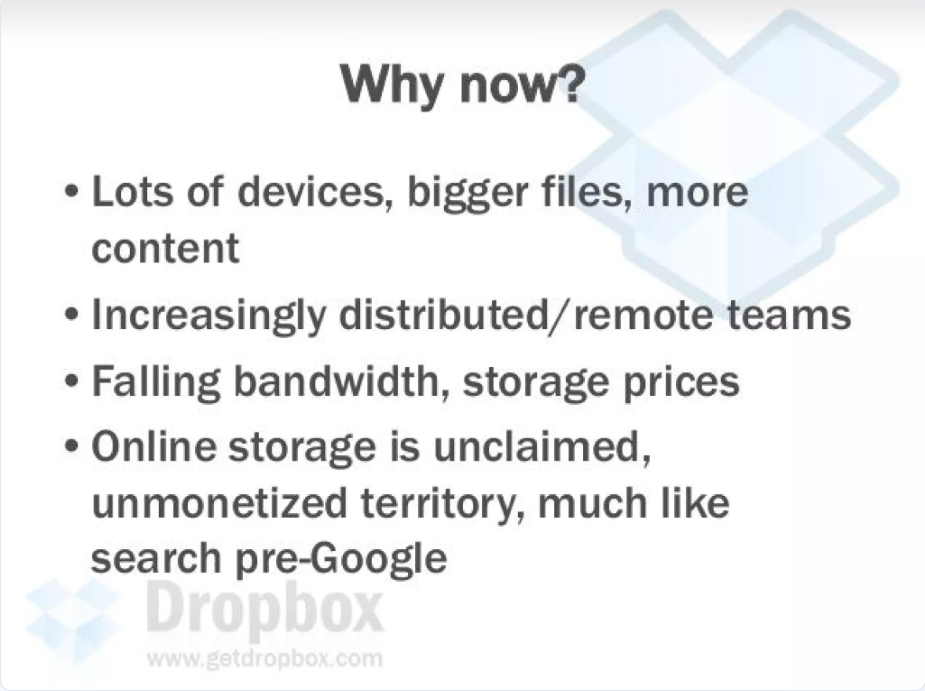 Dropbox’s pitch deck is a prime example of the “less is more” approach, hitting all the critical points while being clean and to the point.