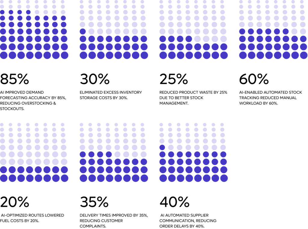 - AI improved demand forecasting accuracy by 85%, reducing overstocking & stockouts.