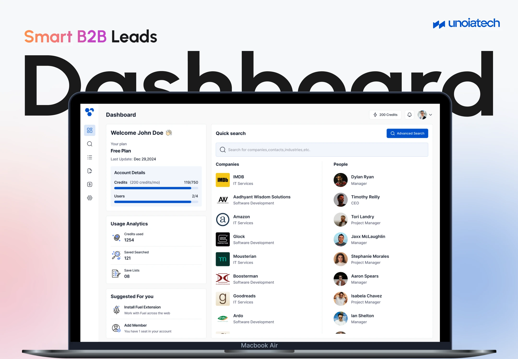 Our AI-powered Chrome extension simplifies B2B lead generation by providing accurate contact data and company insights. It helps businesses quickly find verified emails and phone numbers, filter prospects by job title and industry, and streamline outreach efforts. Designed for sales teams, marketers, and recruiters, this tool enhances efficiency and boosts conversions by making prospecting faster and smarter.