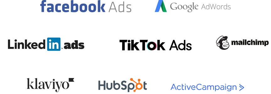 - Facebook Ads, Google Ads, LinkedIn Ads, and TikTok Ads for automated targeting.