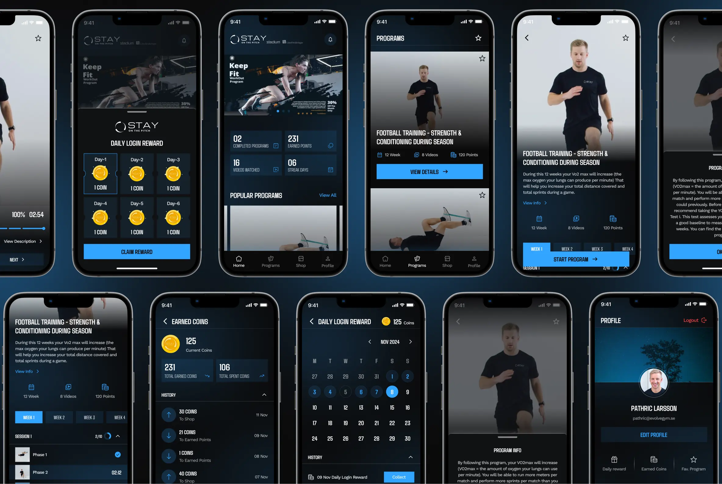 - Gamified rewards system with Stay on the Pitch Coins for a fun, motivating experience.